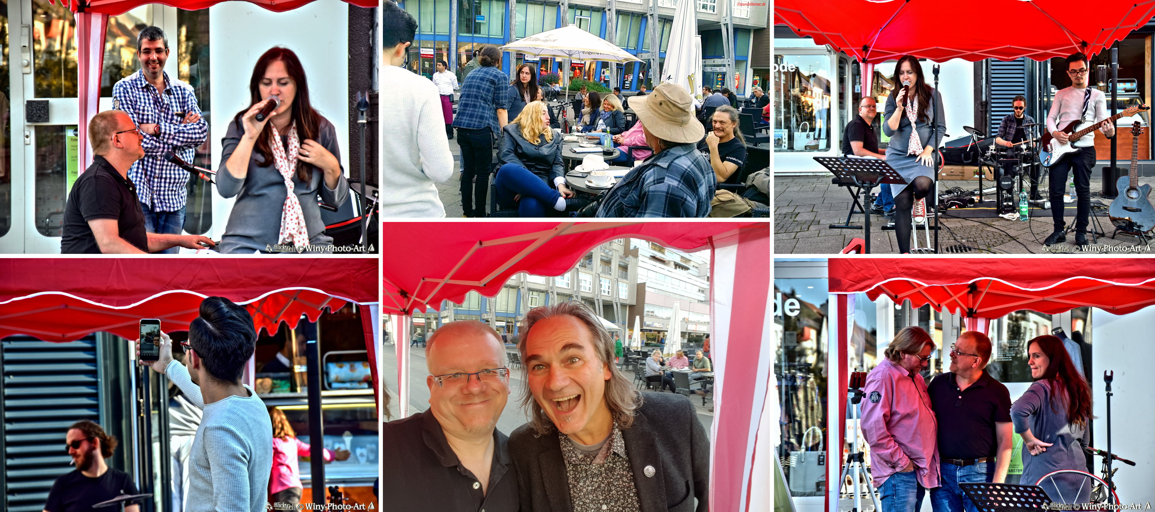 … im Anschluss an die harte Parteiarbeit, verwöhnten wir einige wenige von Marilyns Parteigenossen, ein paar zum Gig erschienene Freunde (unter anderem Winy, Nero und Toff) und einem bunt gewürfeltem Publikum eines Eiscafes in der Dillinger Innenstadt.