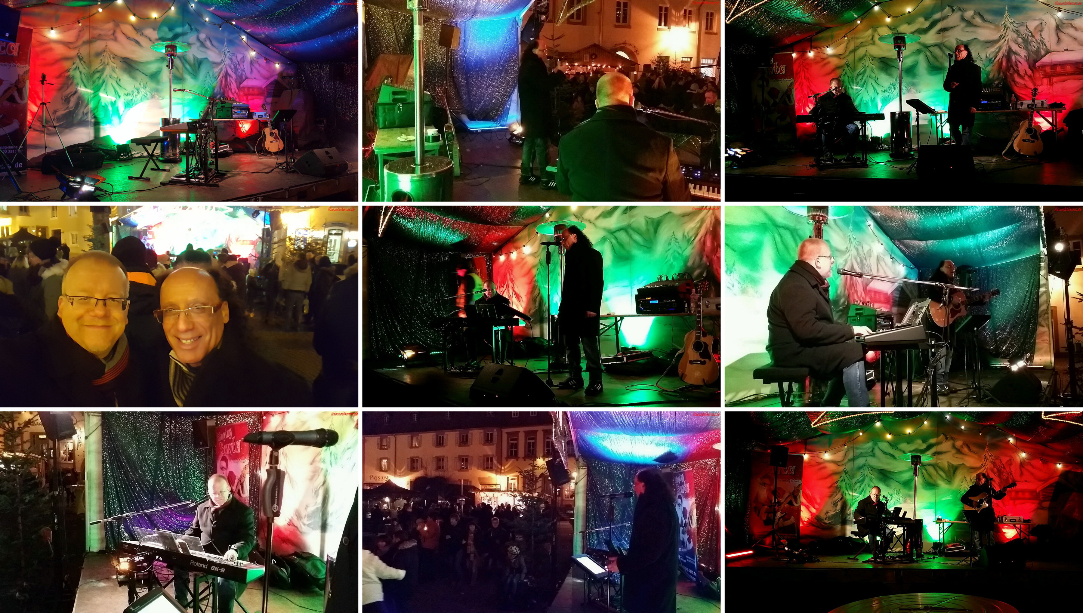 Weihnachtsmarkt Ottweiler 2017 war Neuland, aber alleine die wunderschön gestaltete Bühne – man kann mit ein wenig Liebe (oder in diesem Fall ein wenig Licht) soviel realisieren…