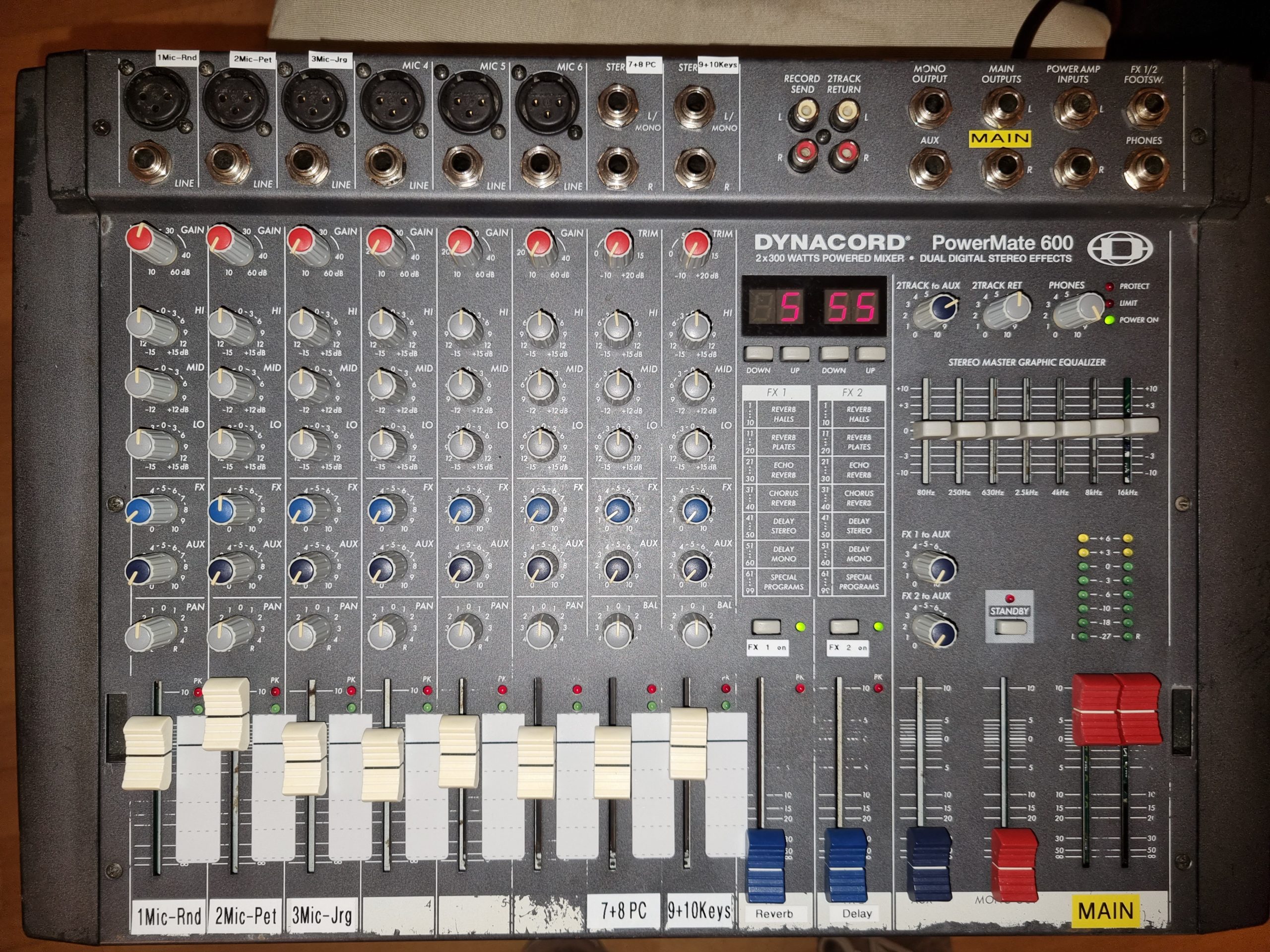 Das gute Stück hatte durchaus einige heftige Gebrauchsspuren und ein Ausgang wollte nicht mehr. Der „Spezialist“ von Vorbesitzer hatte wohl immer die Kabel zwischen Haube und Fadermarkierung transportiert. Da war nix mehr zu lesen – „fachmännisch“ weggeschmirgelt. Am Ende konnte ich (dank der massiven Unterstützung meines Blues-Bassisten am Lötkolben) alle technischen Probleme (ein Widerstand, ein Transistor und ein Fader) lösen und auch die Markierung „künstlerisch“ wieder herstellen. Jetzt kommt das Teil in den BBWN Proberaum, wo wir zukünftig doch eine eigene fest installierte Proberaum-PA mit eben diesem Powermixer einsetzen werden. Ich darf an dieser Stelle schon verraten, dass das Suuuper geklappt hat und der Sound im Proberaum jetzt wesentlich besser ist. Der Powermate hält, was er verspricht. Alt, aber keinesfalls nutzlos…